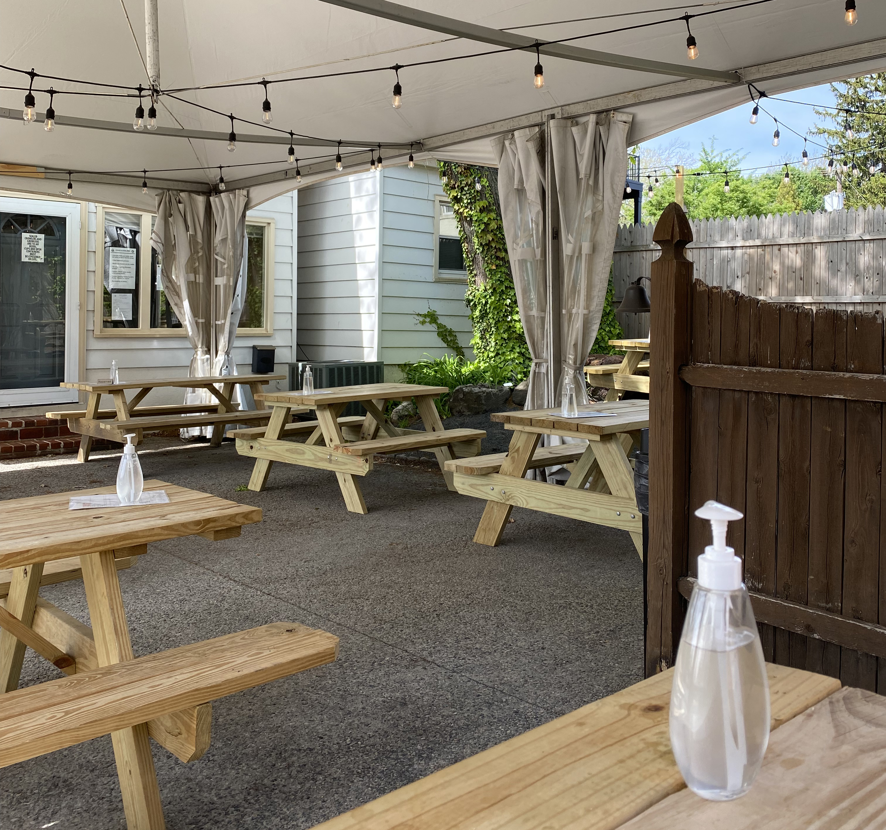 There is street meter parking out front and a rather large lot near the rear of the brewery across the street. Beings I was there on a weekday afternoon I had no problem finding parking out front. I opted to enjoy my beer outside in the back of the brewery where they had several picnic tables set up with a tent overhead for some shade. Besides the picnic table area they also had a few barrel tables outside in the front of the building and another outside area in the back with a few hightop tables and lots of sun. Inside the space is generous with lots of warm tones, wood and plenty of seating. You are allowed to bring food in and dogs are welcomed outside. The interior is a nice size and felt warm and inviting. The staff was very attentive and welcoming.